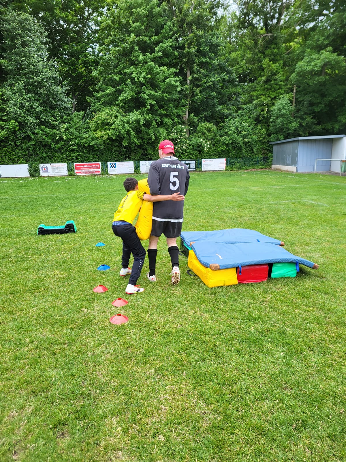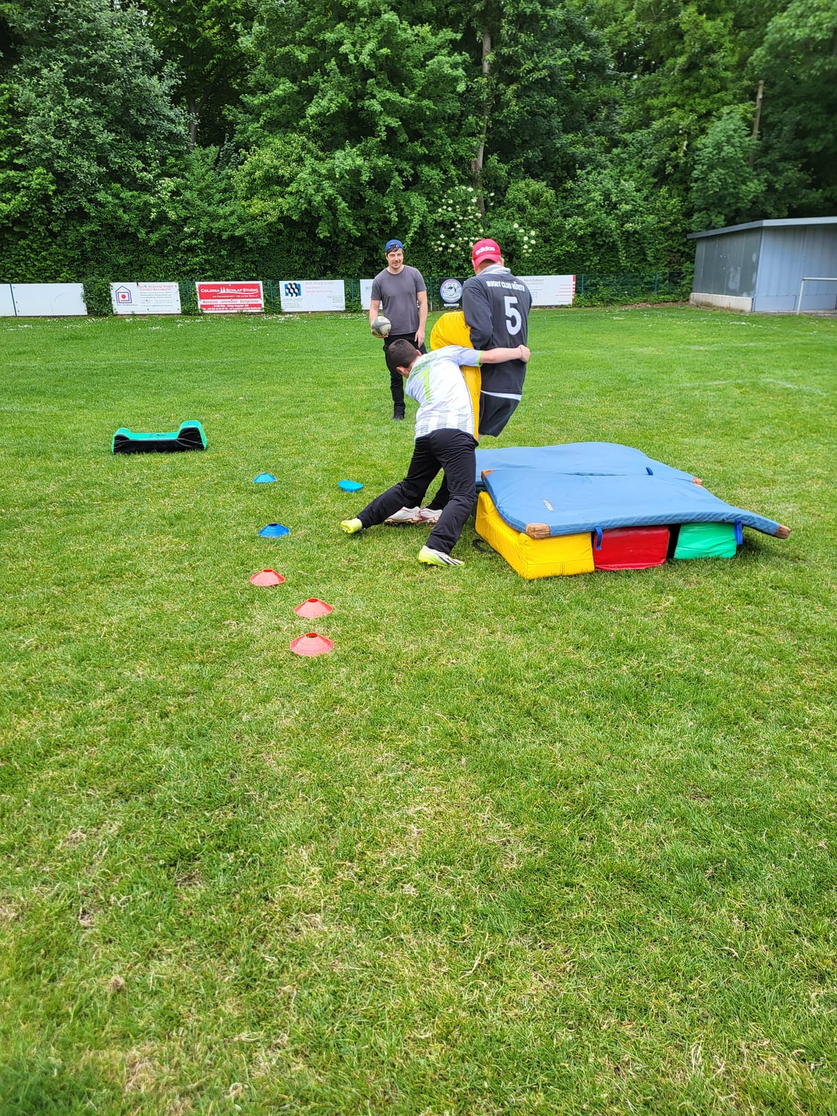 Während der Drogensuchtpräventionstage haben bis zu 15 Jungen und Mädchen drei schöne Tage auf dem Rugby Gelände des Hürther Rugbyclubs in Kendenich erlebt. Auf dem Rasenplatz des Rugbyclubs standen ein Haupttrainer und drei Assistenztrainer zur Verfügung. Sie zeigten, wie man richtig tackelt, das Rugby-Ei wirft, passt und fängt. Im letzten Spiel durften sogar die Mitspieler getackelt werden. Zwischendurch, als es regnete, durften die Schüler in den Kraftraum gehen und haben auch Kicker gespielt. Das fanden alle cool und hat viel Spaß gemacht. Am Ende des dritten Tages gab es sogar Pizza von der Pizzeria Milano. Dies hatte ein Vater spendiert und es hat allen sehr gut geschmeckt. Fazit: Es war eine tolle Zeit im Rugbyclub Hürth, die allen sehr viele neue und unvergessliche Erfahrungen gebracht hat.
