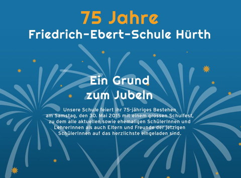 Im vergangenen Jahr 2015 feierte unsere Schule ihr 75-jähriges Bestehen. Der Höhepunkt dazu waren im Mai 2015 entsprechend thematisch ausgerichtete Projektwochen sowie das rundum gelungene Schulfest. Zur Informationsvermittlung davor und für die Erinnerung danach wurde eigens aus diesem Anlass eine eigene Jubiläumswebsite erstellt. Damit dieses Ereignis zumindest bis zum nächsten runden Jubiläum online erreichbar ist, sichert der Förderverein die Betreuung der Website sowie den dafür erforderlichen Webspace bei einem Hoster.